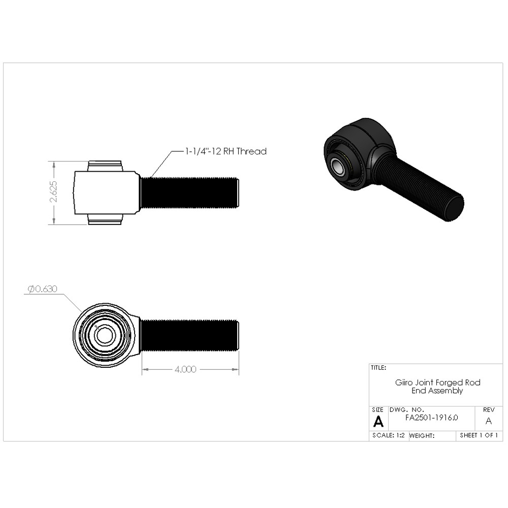 Końcówka z tuleją Giiro do dolnego wahacza przód Clayton 1-1/4"-12