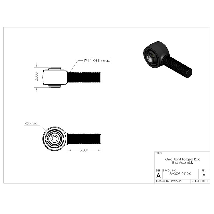 Końcówka z tuleją Giiro do górnego wahacza przód Clayton 1"-14