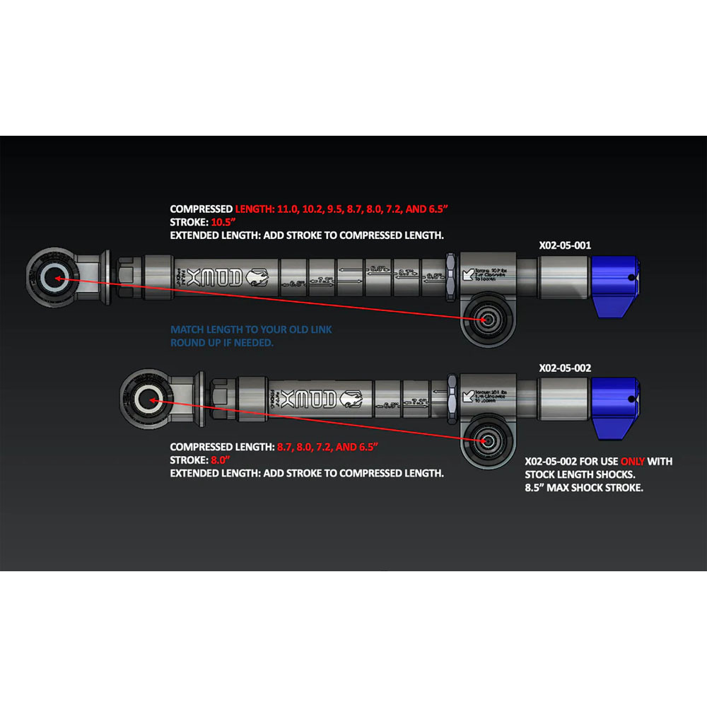 W przypadku korzystania z amortyzatorów OEM lub krótszym niż 9,5" skoku można użyć 10,5" zestawu autoLynx, po zastosowaniu 2,0" zestawu bumpstopów na przednią oś