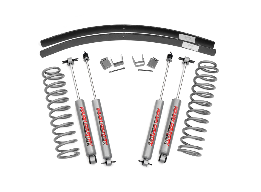 Zawieszenie Jeep Cherokee XJ. Podstawowy zestaw pozwalający na podniesienie zawieszenia o 3" (7,5 cm).
