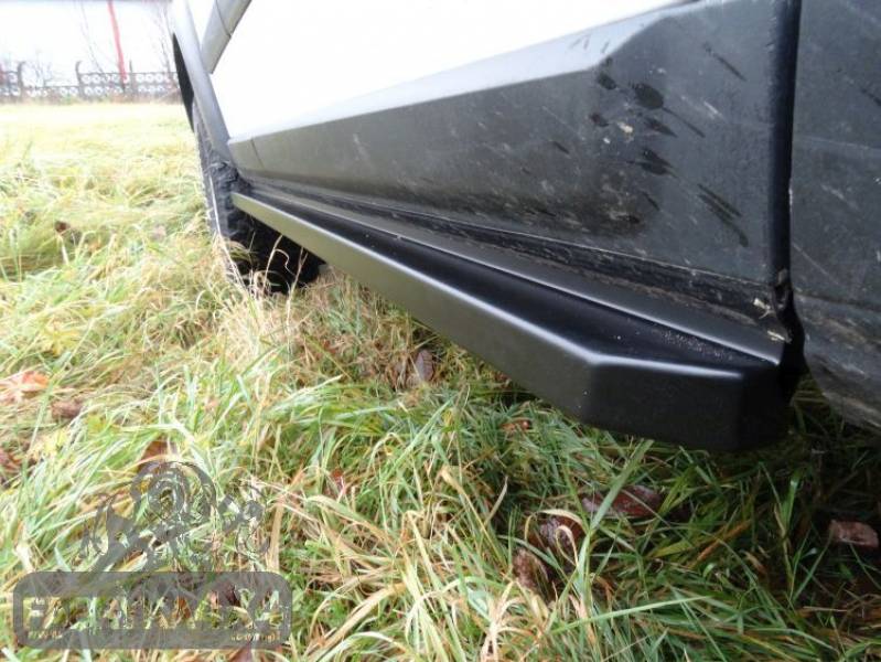 Progi zabezpieczają samochód przed wystającymi konarami drzew, kamieniami czy innymi przeszkodami w terenie. Wszystkie nasze produkty standardowo malowane są w kolorze czarnym matowym RAL 9005.
