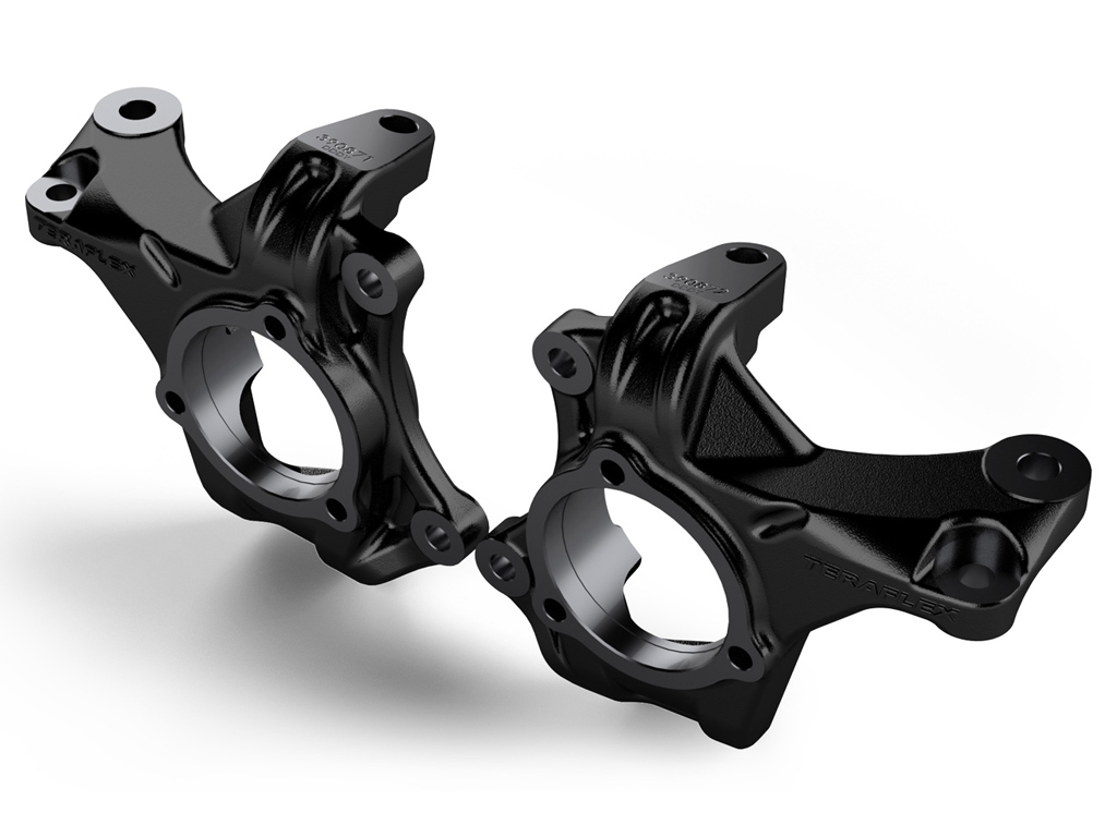 Przedłużone zwrotnice Teraflex przeznaczone są do Liftu 4"+. Zwrotnice są kompatybilne z fabrycznymi oraz akcesoryjnymi wałami, sworzniami oraz drążkami kierowniczymi. Nie mają wpływu na działanie systemów bezpieczeństwa takich jak ESP, ABS.
