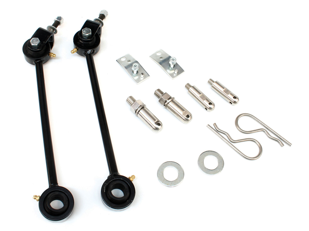 Rozpinane Przednie Łączniki Stabilizatora Teraflex zapewniają cichą pracę oraz łatwość w obsłudze. Łączniki posiadają duże poliuretanowe łożysko oraz trzpień aby ułatwić rozpinanie. Gdy są zapięte poprawiają trakcję na drogach asfaltowych oraz reakcję samochodu na ruchy kierownicą. Gdy są rozpięte nie ograniczają ruchów zawieszenia w terenie.