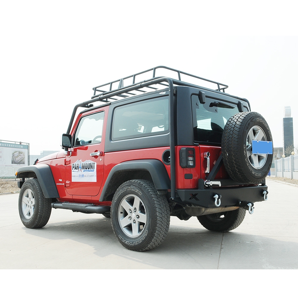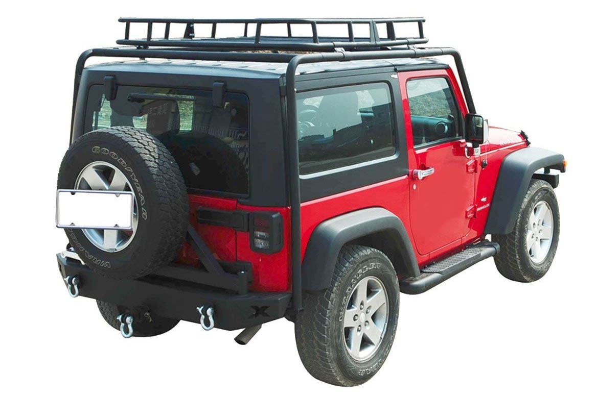 Bagażnik dachowy Jamboree dedykowany dla Jeep Wrangler JK (wersja 3 drzwiowa) z koszem. Produkt renomowanej marki Paramount Automotive. Cały stelaż kosza zamontowany na dwóch stalowych rurach (o średnicy 5cm). Praktyczny sprzęt który nie tylko jest stylowym dodatkiem dla Twojego Wranglera ale również funkcjonalnym rozwiązaniem dla transportu lekkich rzeczy, które nie zawsze mieszczą się w małym wnętrzu samochodu.