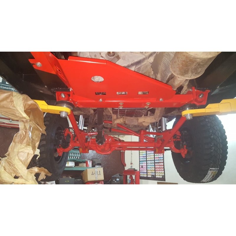 Osłona reduktora 99-04 Jeep Grand Cherokee WJ. Wykonana z blachy stalowej konstrukcyjnej o grubości 4mm. Śrutowana i malowana proszkowo w technologi dwuwarstwowej ze strukturą. Montowana w fabryczne otwory samochodu. Nie wymaga wiercenia ani spawania. Waga ok. 5,8 kg.