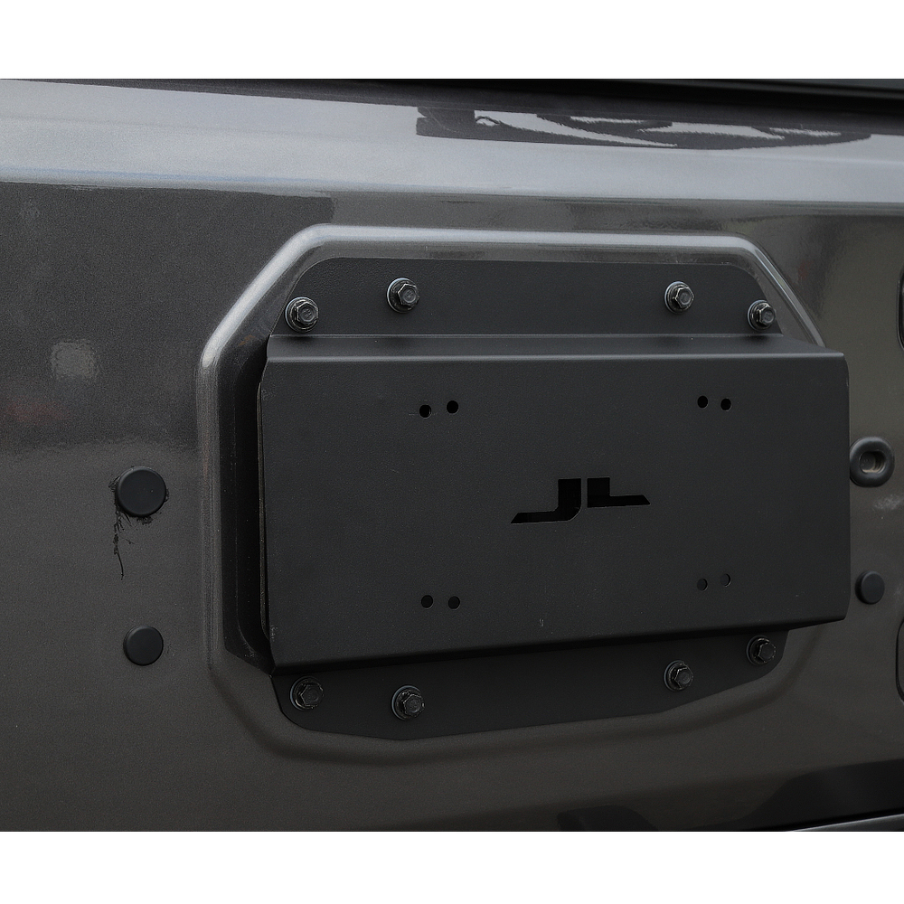 Dzięki relokacji mocowania tablicy rejestracyjnej firmy OFD Offroad Fabrication możesz zmienić jej położenie i umieścić ją w centralnym punkcie swojego Jeepa, dzięki czemu będzie bardziej widoczna. Płyta spełnia również funkcję zaślepiającą miejsce mocowania koła zapasowego. Prosty, elegancki design i czarny kolor wykończenia pasują idealnie do Twojego Jeepa.