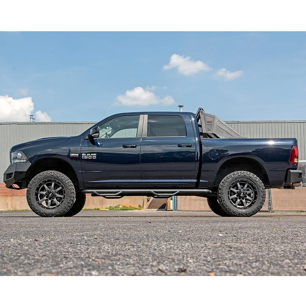 Zderzak Rough Country oferuje stalową konstrukcje wykonaną z materiału o grubości 5/32" oraz pokrytą antykorozyjną powłoką w kolorze czarnym. Zderzak posiada mocowania szekli co w razie problemów ułatwi wyciągnięce samochodu.