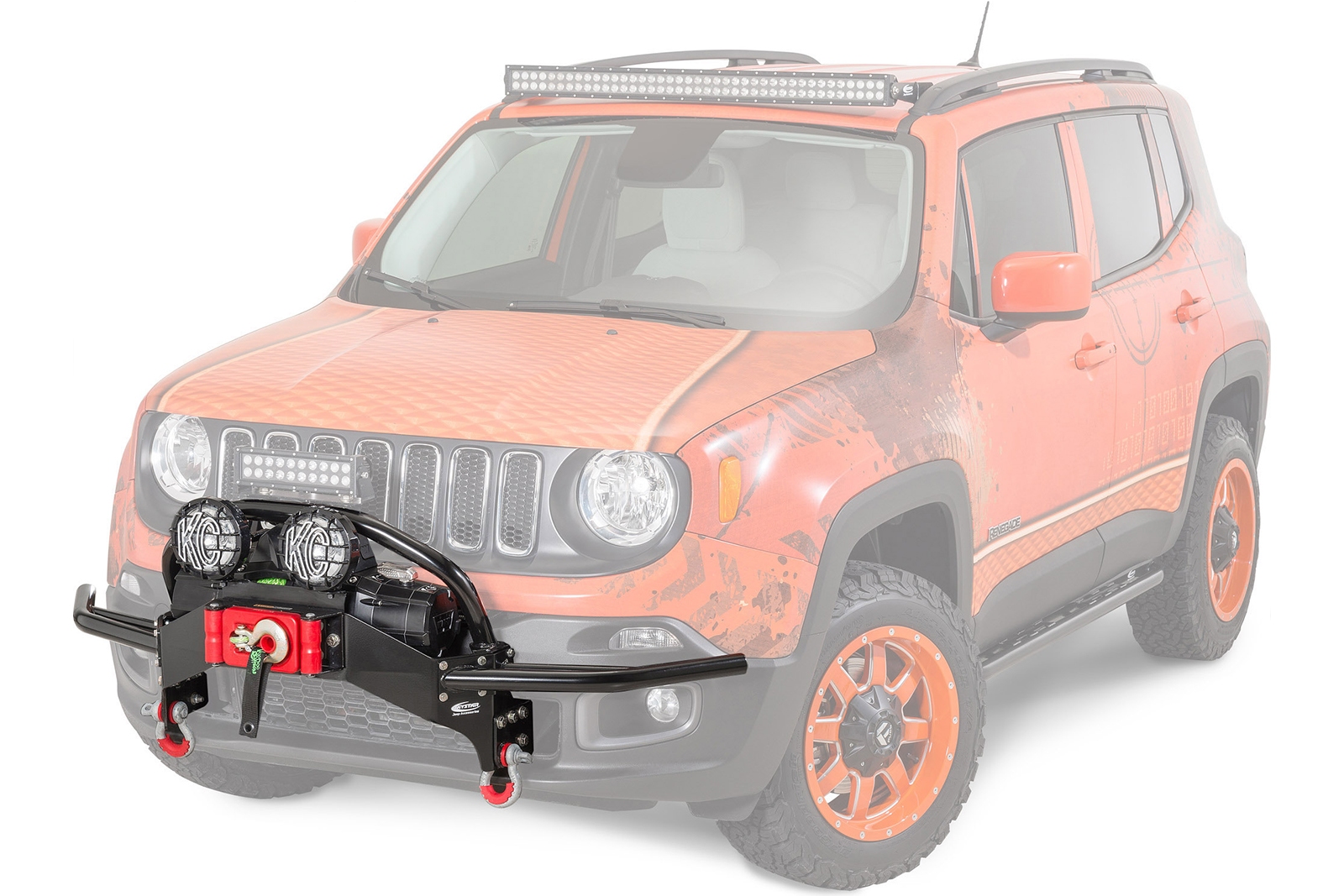 Przedni, stalowy zderzak modułowy, wzór STEEL, zaprojektowany dla Jeep Renegade 2014-2018 (przed liftingiem, nie pasuje do wersji Trailhawk).