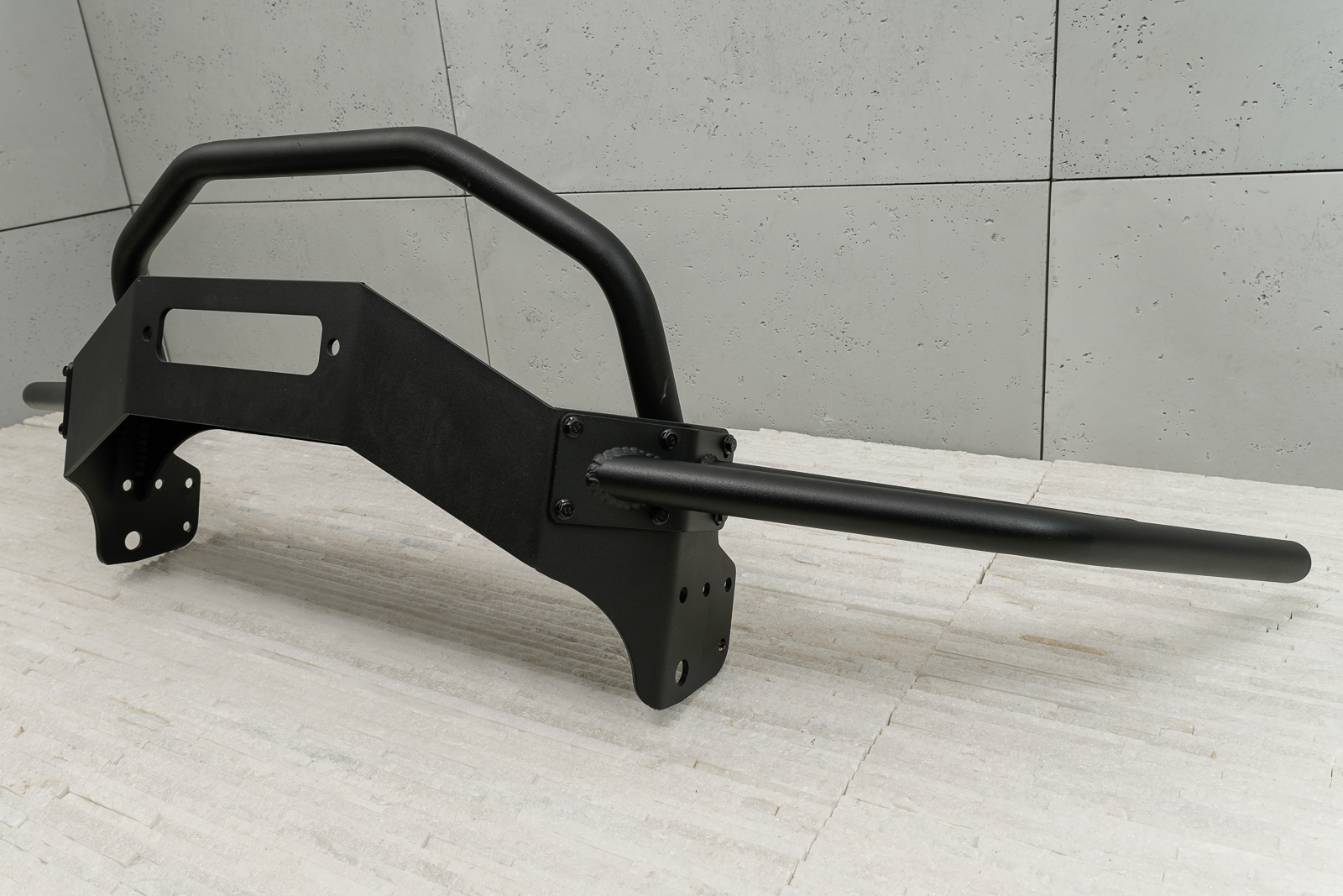 Produkt został wykonany ze stali walcowanej na zimno, malowanej proszkowo z użyciem wstępnej powłoki epoksydowej - dzięki tak solidnej powłoce, zderzak znakomicie się prezenuje przez długi czas użytkowania. Element zaprojektowany został tak, aby nie ograniczać chłodzenia silnika. Istnieje mozliwość zamontowania do zderzaka wyciągarki elektrycznej, dla której zostało przygotowane specjalne miejsce.