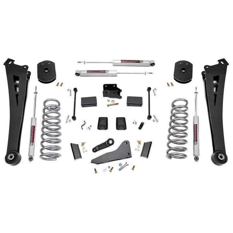 Zyskaj dodatkową wysokość jazdy i agresywny wygląd z 4,5" zestawem zawieszenia od Rough Country. Został on zaprojektowany tak, aby zachować imponujące specyfikacje fabryczne, jednocześnie zwiększając wydajność i trwałość wszędzie tam, gdzie jest to najbardziej potrzebne. Zestaw posiada wytrzymałe, przednie wahacze, precyzyjnie dopasowane do wkręcenia w miejsce fabrycznych mocowań, co ułatwia instalację i zapewnia bardziej fabryczny kąt pracy. Dodatkowo wahacze posiadają gumowe tuleje Clevite, które zapewniają maksymalną absorpcję wibracji. Przednie sprężyny gwarantują niezrównaną jakość jazdy Twojego pojazdu.