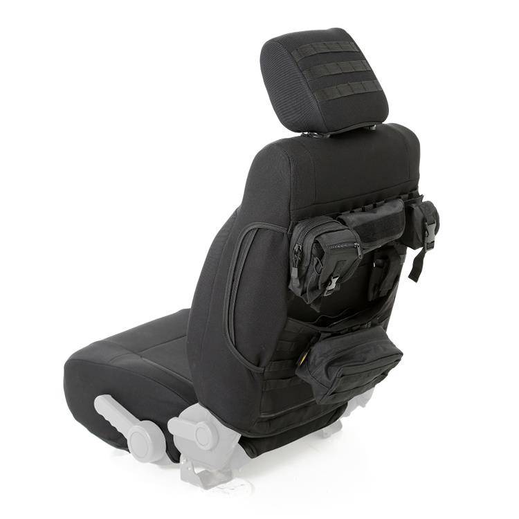 Pokrowce na przednie fotele G.E.A.R. od Smittybilt zapewniają idealne dopasowanie oraz doskonałe miejsce do przechowywania apteczek pierwszej pomocy, latarek, zapałek i innych niezbędnych rzeczy, które będą łatwo dostępne dzięki wygodnym i funkcjonalnym kieszeniom. Wykonane z wodoodpornego nylonu 600D, zapewniają ochronę foteli przed zanieczyszczeniami i zniszczeniem. Produkt zawiera kieszenie na mapy zapinane na zamek, kieszenie Molle oraz taśmy, dzięki którym można przymocować jeszcze więcej potrzebnych w trasie akcesoriów.
