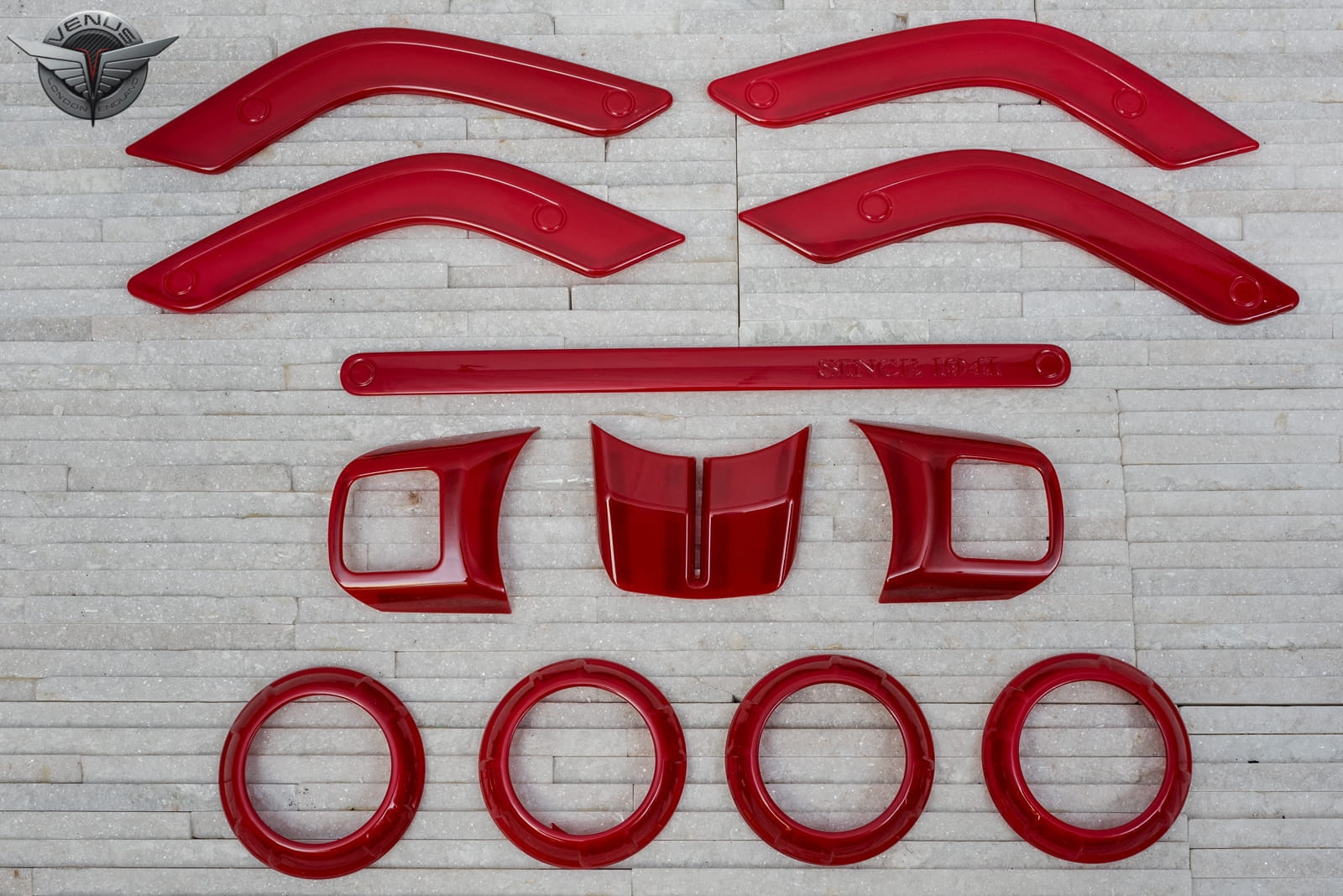 Elementy stylizacyjne kokpitu akcentują i indywidualizują design wewnątrz samochodu. Wykonane są z wysokiej jakości tworzywa ABS. Komplet zawiera nakładki na kierownicę, nawiewy deski rozdzielczej, uchwyt pasażera deski rozdzielczej i uchwyty boczków drzwiowych drzwi przednich i tylnych. Kolor czerwony.