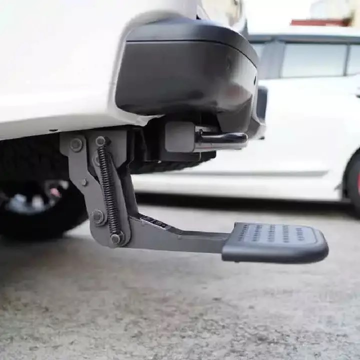 Jak zapewne udało Ci się zauważyć na zdjęciach, stopień jest składany. Jeśli nie chce Ci się schylać, wystarczy że podniesiesz go butem. Opuścisz go w ten sam sposób, nie ma tu żadnych skomplikowanych instrukcji. Dzięki temu szybko, łatwo i bezpiecznie sięgniesz do paki swojej terenówki bez otwierania klapy. Wytrzymałe zawiasy i łożyska ze stali nierdzewnej zapewniają bezproblemowe działanie mechanizmu.