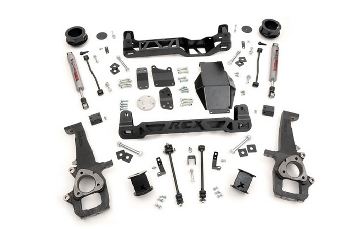 Zwiększ możliwości oraz ochronę swojego Dodga RAM 1500 dzięki 4" liftowi zawieszenia Rough Country. Zaprojektowany tak, aby zwiększyć możliwości terenowe oraz pozwolić na montaż opon do 35". Zestaw jest bardzo wytrzymały oraz wykonany z wysokiej jakości materiałów. Cięte laserowo elementy składają się w kompletny zestaw, który posiada wszystkie części potrzebne do podniesienia samochodu. Przednia i tylna kołyska zwiększają prześwit, a wytrzymała płyta osłonowa ochrania dyferencjał. Przedłużone zwrotnice pozwalają na ustawienie odpowiedniej geometrii. Dla zwiększenia osiągów zestaw posiada tylne amortyzatory serii N3.