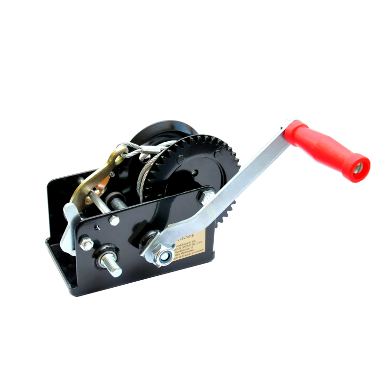 Wyciągarka o mocnej stalowej konstrukcji, przeznaczona do wyciągania małych łodzi, motorów, pojazdów oraz innych przedmiotów. Mechanizm zapadkowy. Hak z blokadą bezpieczeństwa.