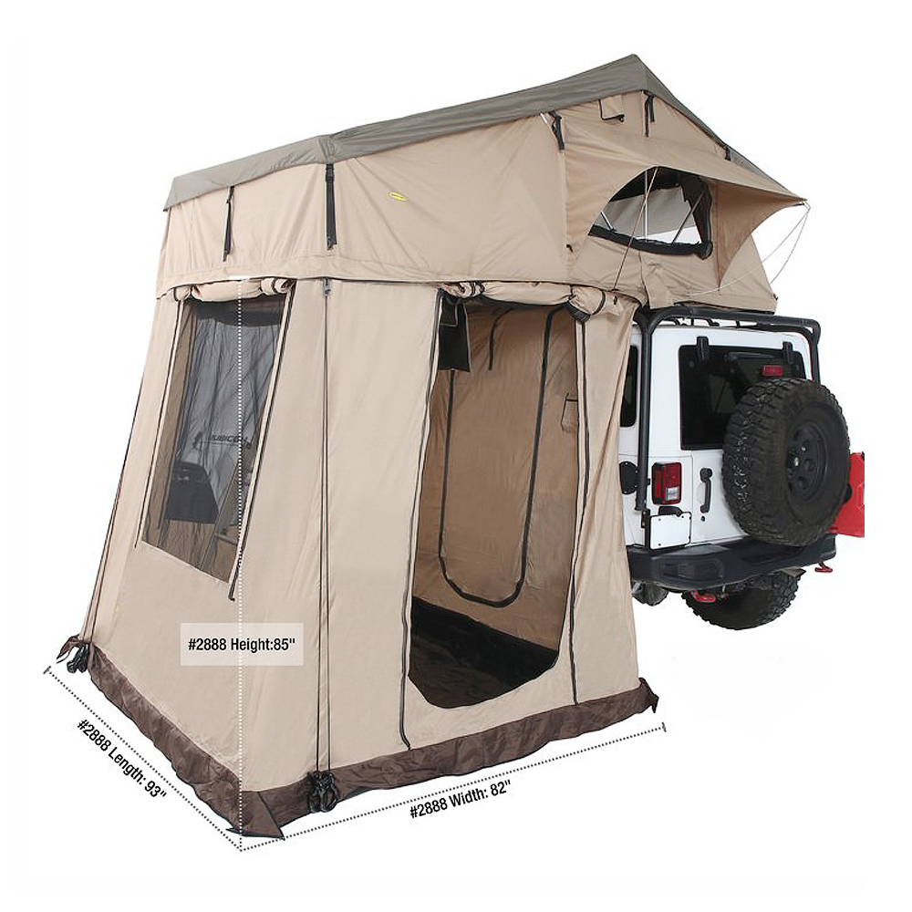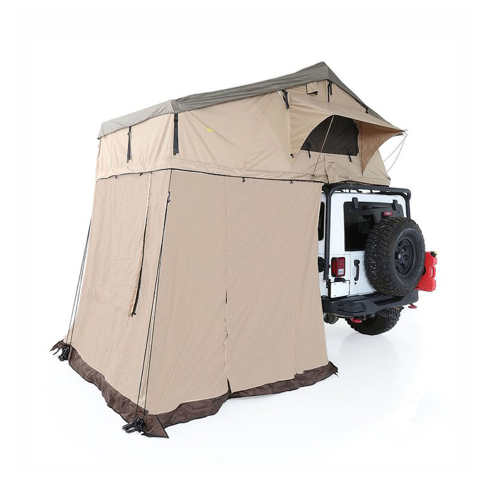 Zapewnij sobie dodatkową przestrzeń oraz prywatność dzięki nowemu produktowi firmy Smittybilt. Aneks do namiotu dachowego oferuje dodatkowe miejsce. Rozbij obóz wszędzie tam, gdzie tylko dojedzie Twój Jeep. Montaż jest wyjatkowo łatwy dzięki użyciu zamków błyskawicznych łączących część dachową oraz aneks. Wykonany z tego samego wytrzymałego poliestru impregnowanego poliuteranem. Idealnie sprawdzi się w trudnych warunkach offroadowych.