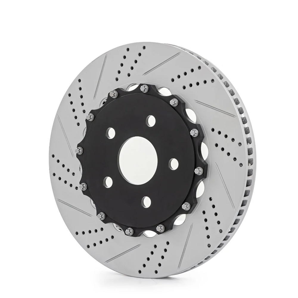 Ponadwymiarowe 2-częściowe nawiercane i nacinane tarcze zaprojektowane z myślą o lepszym rozpraszaniu ciepła i zmniejszeniu zużywania się tarcz, zapewniając stałą siłę hamowania