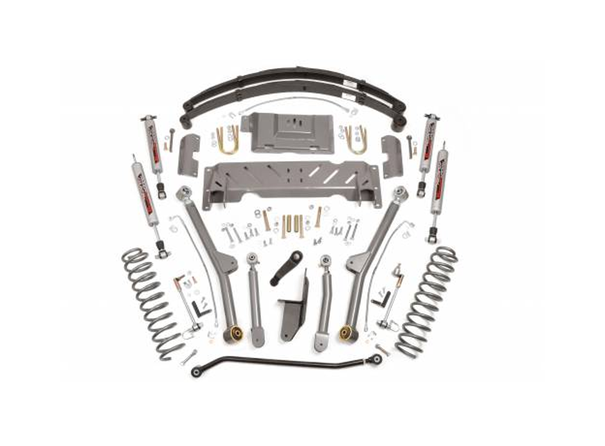 Zawieszenie Jeep Cherokee XJ. Zaawansowany zestaw pozwalający na podniesienie zawieszenia o 4,5" (11,25 cm). Dzięki zastosowaniu wahaczy typu Long Arm pozwala na uzyskanie bardzo dużych wykrzyży podczas jazdy w terenie.