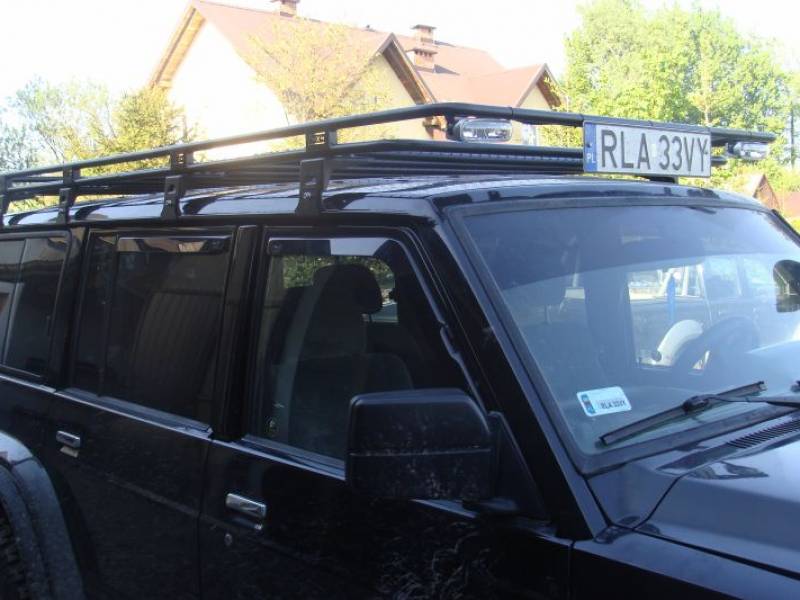 Bagażnik dachowy do Nissana Patrola y60 wykonany z rury o przekroju fi25 posiada mocowania tablicy rejestracyjnej mocowania lamp mocowania, lakierowany proszkowo możliwość wykonania bagażnika w dowolnej konfiguracji