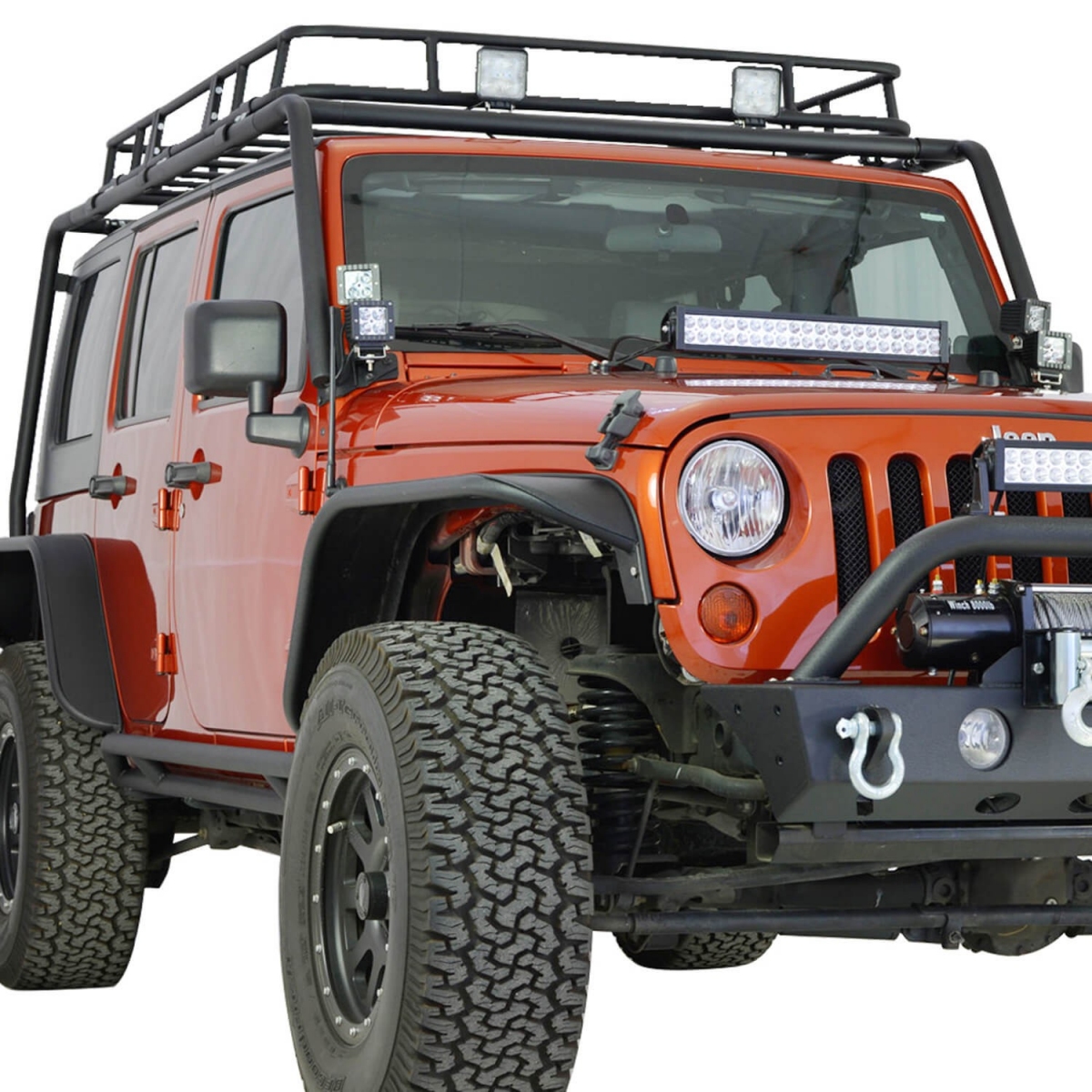 Bagażnik dachowy Jamboree dedykowany dla Jeep Wrangler JK (wersja 5 drzwiowa) z koszem. Produkt renomowanej marki Paramount Automotive. Cały stelaż kosza zamontowany na dwóch stalowych rurach (o średnicy 5cm). Praktyczny sprzęt, który nie tylko jest stylowym dodatkiem dla Twojego Wranglera, ale również funkcjonalnym rozwiązaniem dla transportu lekkich rzeczy, które nie zawsze mieszczą się w małym wnętrzu samochodu.