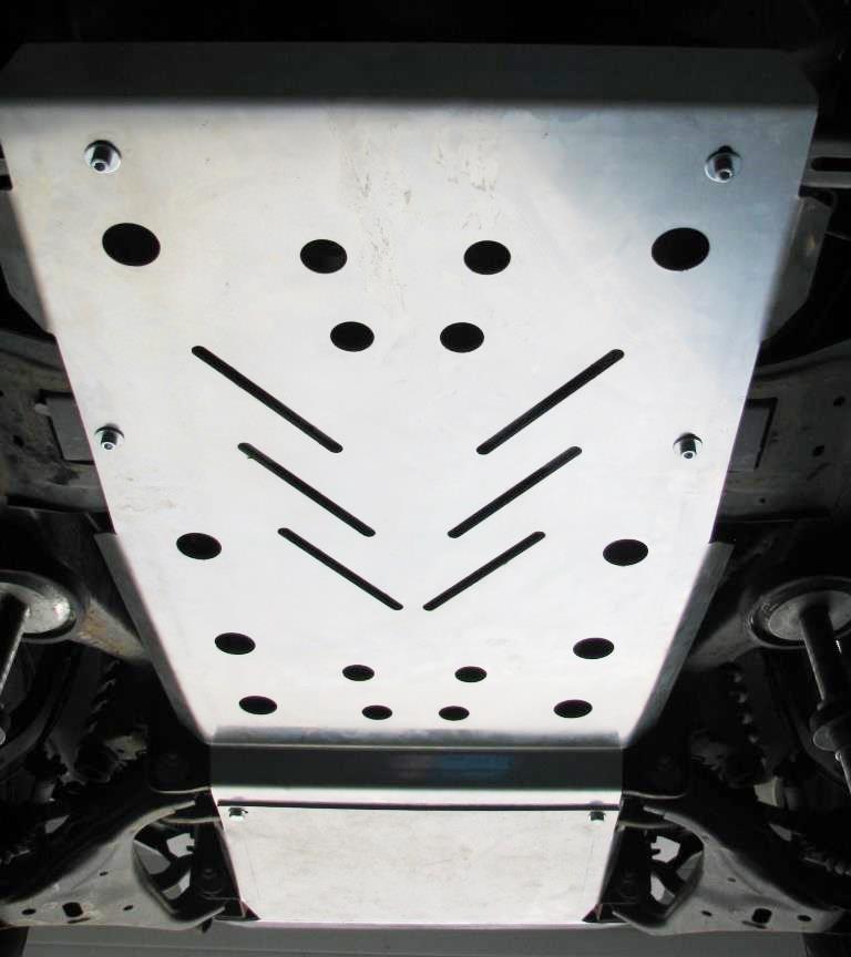 Płyta osłonowa skrzyni biegów i reduktora wykonana z aluminium grubości 6mm. Produkt najpierw cięty jest laserowo, następnie gięty na prasie krawędziowej, a właściwy kształt uzyskuje podczas ręcznej obróbki wykańczającej. Osłona zabezpiecza silnik od spodu podczas jazdy w terenie.