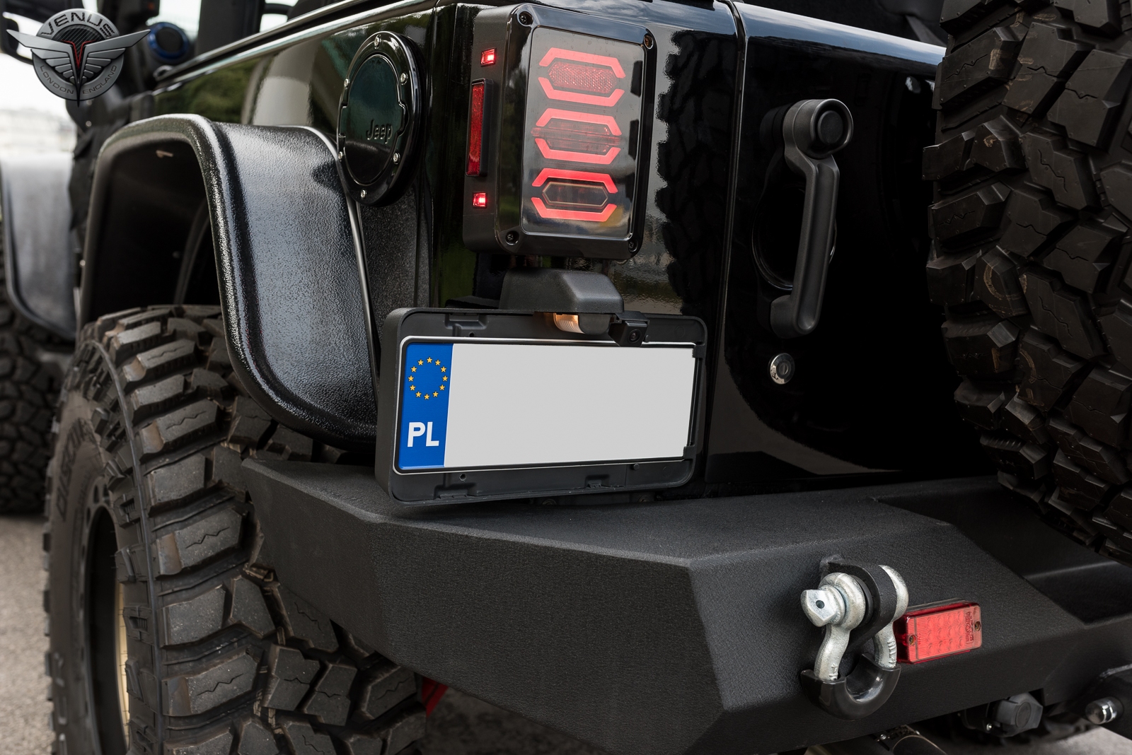 Mocowanie tablicy rejestracyjnej tylnej klapy zaprojektowane dla Jeep Wrangler JK (wersja USA).
