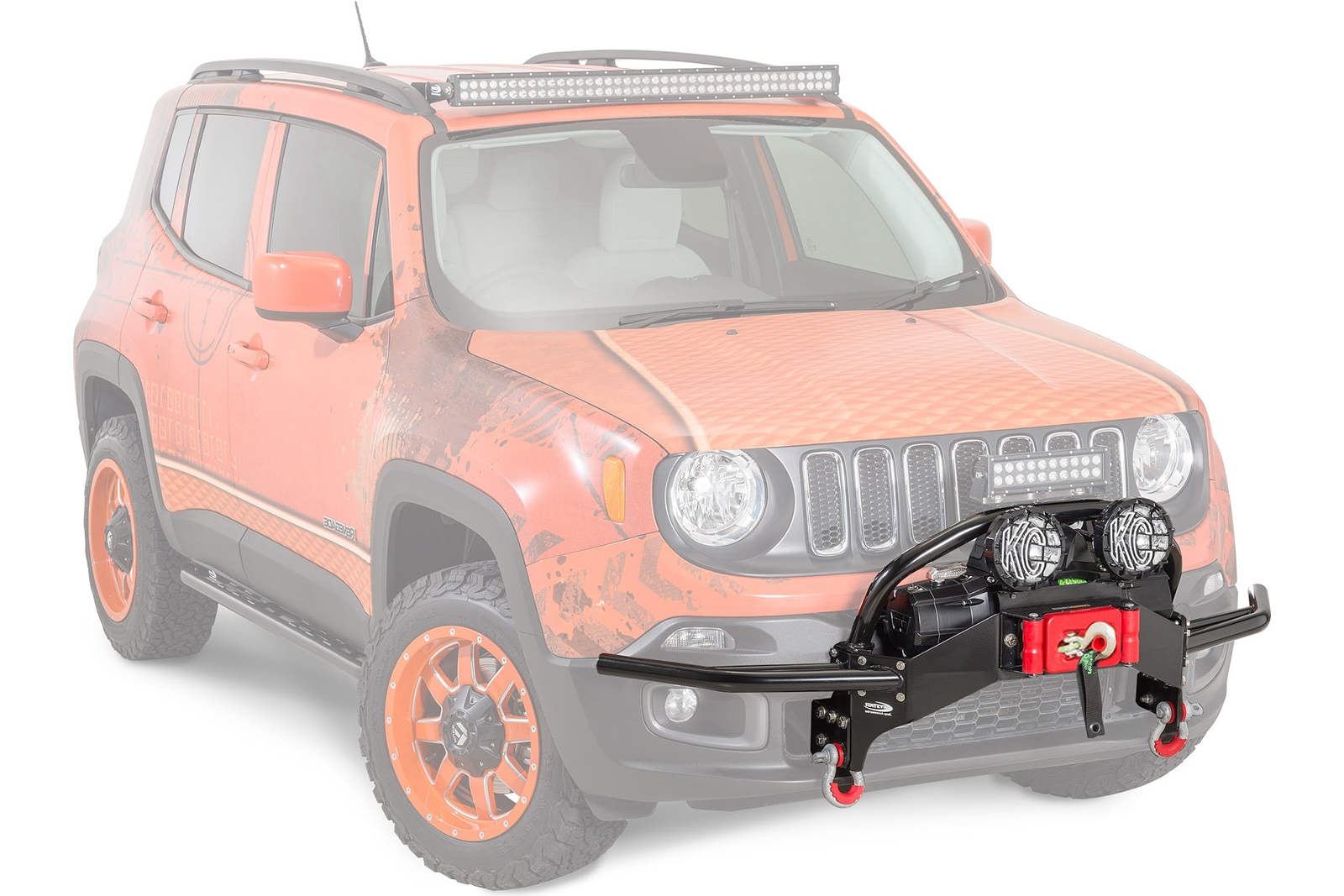 Przedni, stalowy zderzak modułowy, wzór STEEL, zaprojektowany dla Jeep Renegade 2014-2018 (przed liftingiem, nie pasuje do wersji Trailhawk).