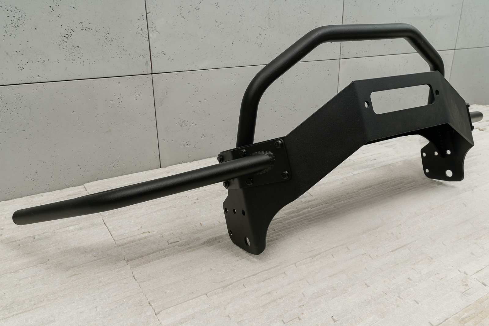 Produkt został wykonany ze stali walcowanej na zimno, malowanej proszkowo z użyciem wstępnej powłoki epoksydowej - dzięki tak solidnej powłoce, zderzak znakomicie się prezenuje przez długi czas użytkowania. Element zaprojektowany został tak, aby nie ograniczać chłodzenia silnika. Istnieje mozliwość zamontowania do zderzaka wyciągarki elektrycznej, dla której zostało przygotowane specjalne miejsce.