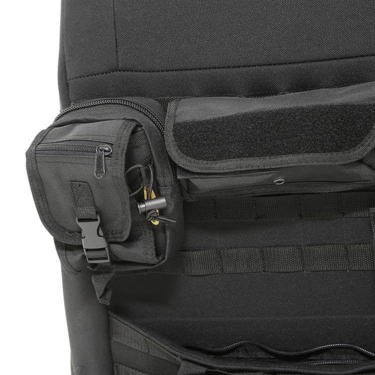 Pokrowce na przednie fotele G.E.A.R. od Smittybilt zapewniają idealne dopasowanie oraz doskonałe miejsce do przechowywania apteczek pierwszej pomocy, latarek, zapałek i innych niezbędnych rzeczy, które będą łatwo dostępne dzięki wygodnym i funkcjonalnym kieszeniom. Wykonane z wodoodpornego nylonu 600D, zapewniają ochronę foteli przed zanieczyszczeniami i zniszczeniem. Produkt zawiera kieszenie na mapy zapinane na zamek, kieszenie Molle oraz taśmy, dzięki którym można przymocować jeszcze więcej potrzebnych w trasie akcesoriów.