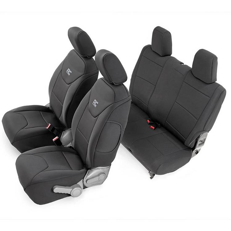 Komplet pokrowców Neoprene firmy Rough Country pozwoli ochronić tapicerkę auta od wody, błota i innych zanieczyszczeń. Te wygodne pokrycia posiadają 4-warstwową konstrukcję z grubym, piankowym wypełnieniem, które zapewnia wygodę oraz komfort użytkowania. Zewnętrzna warstwa została wykonana z neoprenu, co pozwala uchronić produkt przed wodą oraz pleśnią. Każdy pokrowiec został zaprojektowany tak, aby idealnie pasował do Twojego pojazdu, nie ograniczając dostępu do regulacji siedzenia czy poduszek powietrznych.