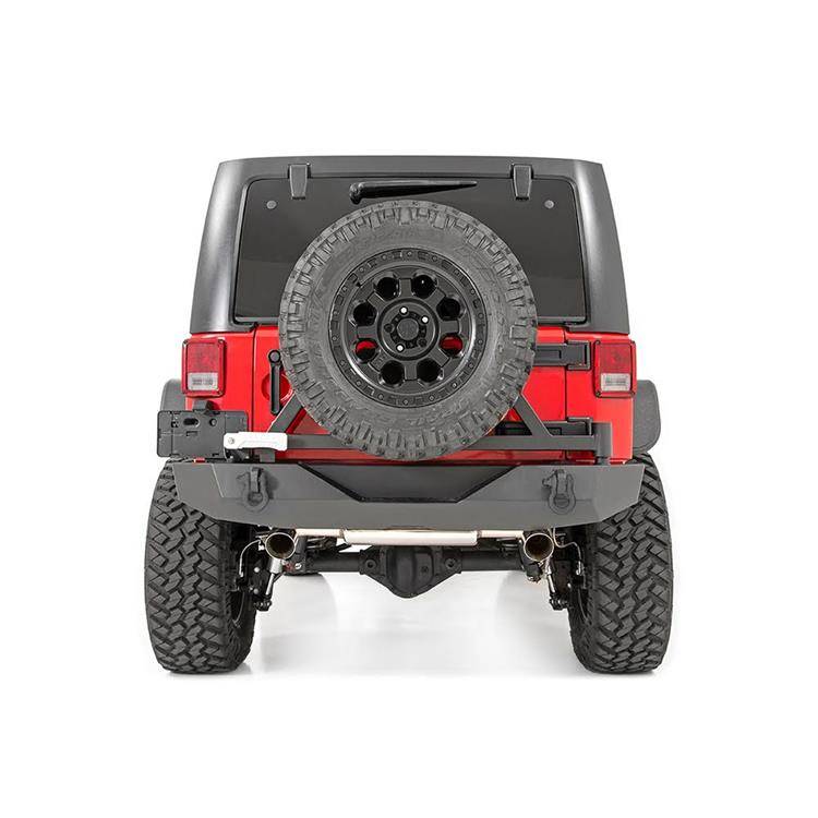 Wzmocnij tył swojego JK dzięki zderzakowi Rock Crawler Rough Country z mocowaniem koła zapasowego. Stylowy, wytrzymały, stalowy zderzak oferuje dodatkową ochronę tyłu samochodu oraz zwiększa prześwit dla lepszych właściwości w terenie. Zderzak Rough Country oferuje konstrukcję wykonaną ze stali o grubości 5/32" oraz pomalowaną proszkowo na kolor czarny. Zderzak posiada szekle, co ułatwi wyciągnięcie pojazdu z terenowych opresji.