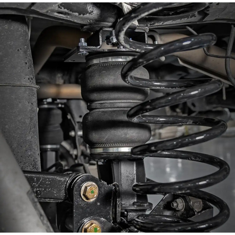 Jedną z zalet pick-up'ów jest ich ładowność, jednak duży ciężar umieszczony na pace, stan tylnych resorów czy holowanie przyczep mogą spowodować opadnięcie tyłu pojazdu pod obciążeniem. Zestaw od Rough Country to innowacyjny produkt, który stanowi rozwiązanie tego problemu. Zawiera dwie, wysokiej jakości poduszki pneumatyczne. To niezbędne akcesorium, które sprawia, że tył Twojego pojazdu jest wypoziomowany względem przodu. Zestaw poprawia stabilność podczas jazdy i redukuje nurkowanie zawieszenia dla ładunku do 5000 lbs. Zestaw zawiera zawory oraz wszystkie elementy, które pozwalają na wygodną instalację.