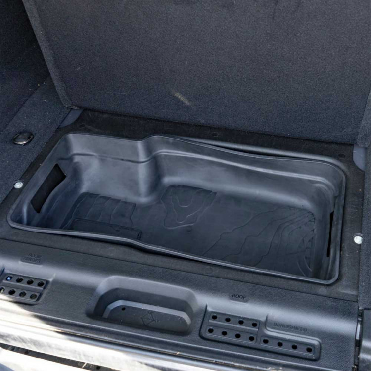 Wkładka do schowka OFD wykonana z tworzywa sztucznego idealnie dopasuje się do reszty elementów bagażnika tworząc spójną całość. Produkt został zaprojektowany tak, aby zapobiegać rysowaniu się schowka oraz produktów wewnątrz. Dodatkowo niweluje hałasowanie i pomaga w utrzymaniu porządku w bagażniku.