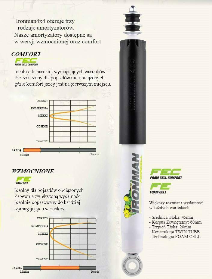 Pełny zestaw zawieszenia renomowanej australijskiej firmy IRONMAN z opcją montażu.