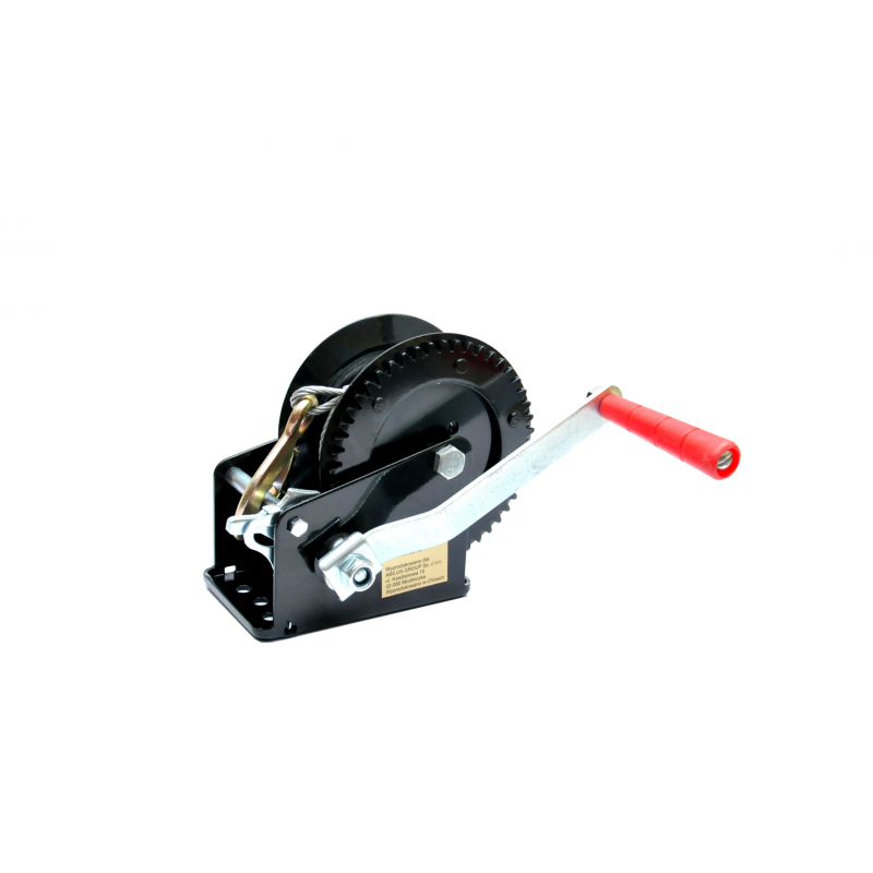 Wyciągarka o mocnej stalowej konstrukcji, przeznaczona do wyciągania-wciągania małych łodzi, motorów, pojazdów oraz innych przedmiotów. Mechanizm zapadkowy. Hak z blokadą bezpieczeństwa.